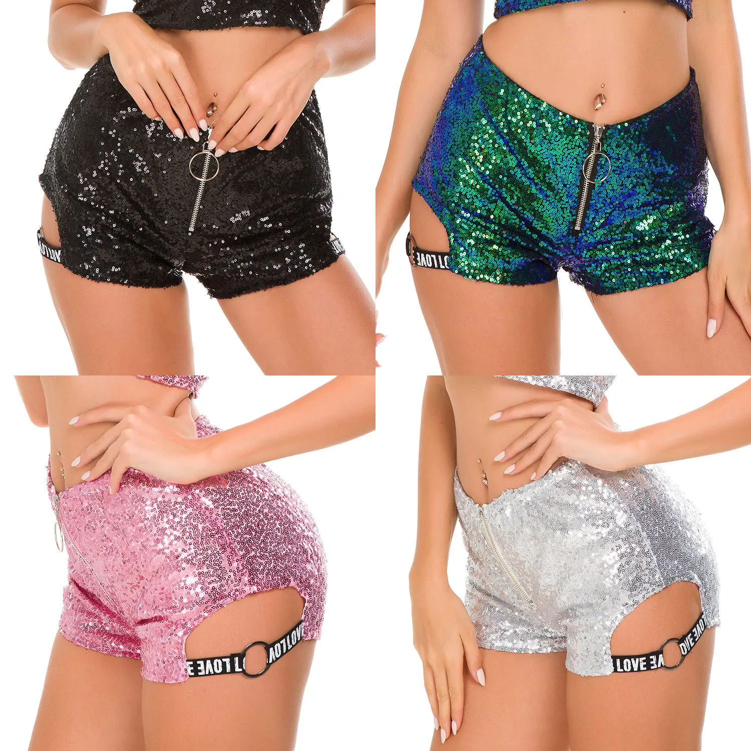 | 2020 sexy Women shorts club suit shorts women High Waist Sexy Zipper Sequins Shorts Hole Bandage Mini Hot girls panties fashion |