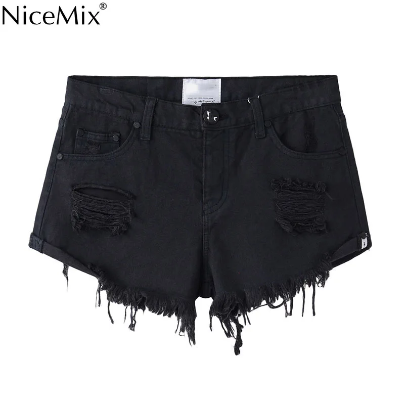 NiceMix Women Casual Pocket Denim Shorts Vintage Ripped Hole Fringe Jeans Shorts Summer Girl Hot Shorts 82000
