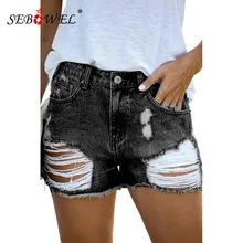 Best Price Comparison With SEBOWEL 2020 New Summer Woman High Wiast Distressed Denim Shorts Medium Washed Broken Holes Short Jeans Female Casual Shorts