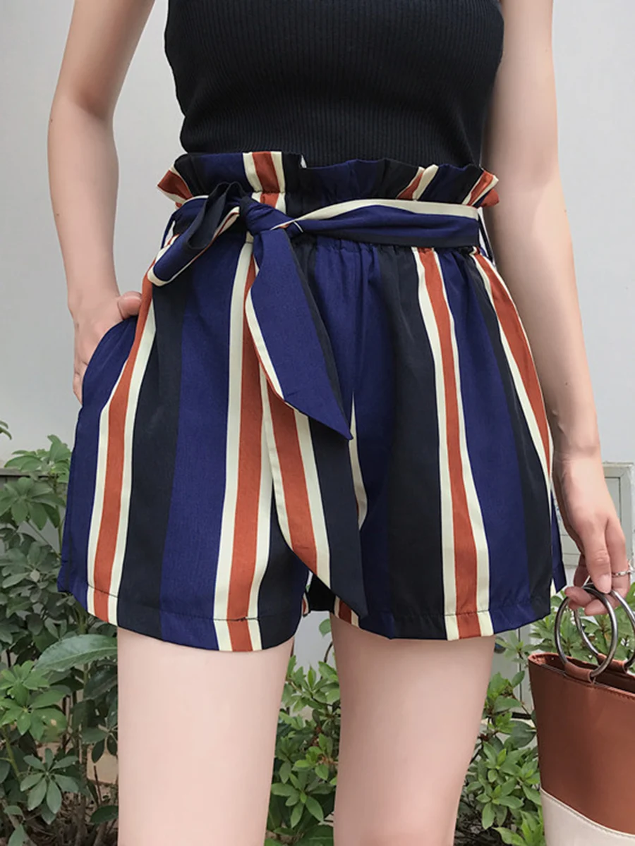 0 Response to "Women Striped Chiffon Wide-leg Short-pants Fashion Korean Loose High Waist Shorts Casual Lace up Shorts"